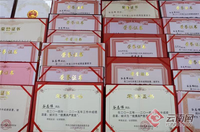 谷志伟的拼搏看在所有人眼里,“在我们收遗物时,发现了这些证书,但并不能保证这是谷志伟获得的全部证书。”一位收集谷志伟材料的警察说,其实大家知道,几乎每年的各种荣誉都被谷志伟'包圆'了,“有时候他还主动说,不要选他,把荣誉给更年轻的同志。”