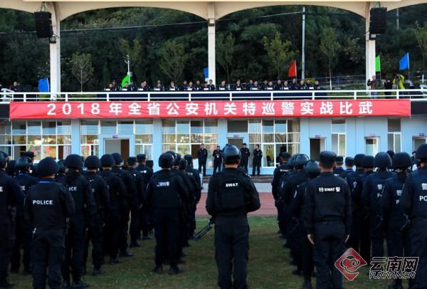 云南网讯(记者 赵岗)长短枪互换射击、狙击步枪射击、攀爬索降、3000米武装越野……训练场上硝烟四起。11月20日,云南省公安机关特巡警实战比武启动仪式在昆明市公安局特警支队举行,拉开了2018年全省公安特巡警实战比武竞赛的帷幕。