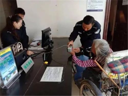照片采集完成后,张奶奶指纹不清晰,采集不明显,陈副所长又帮她洗手,并用湿毛巾擦拭指纹,直到老人办完身份证。