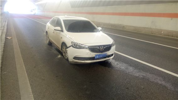 11月18日,在楚雄武定至玉溪易门的武易高速公路丰收隧道口发生了惊险的一幕,高速公路上用于警示的7个沙桶被撞毁,碎片到处都是,桶内的沙子洒落的一地,而在沙桶30米开外的隧道右侧行车道内,停着一辆白色小轿车,轿车车身覆盖了一层沙子,车头轻微变形,前保险杆损坏,机油流了一地,这,到底发生了什么?