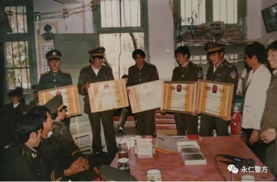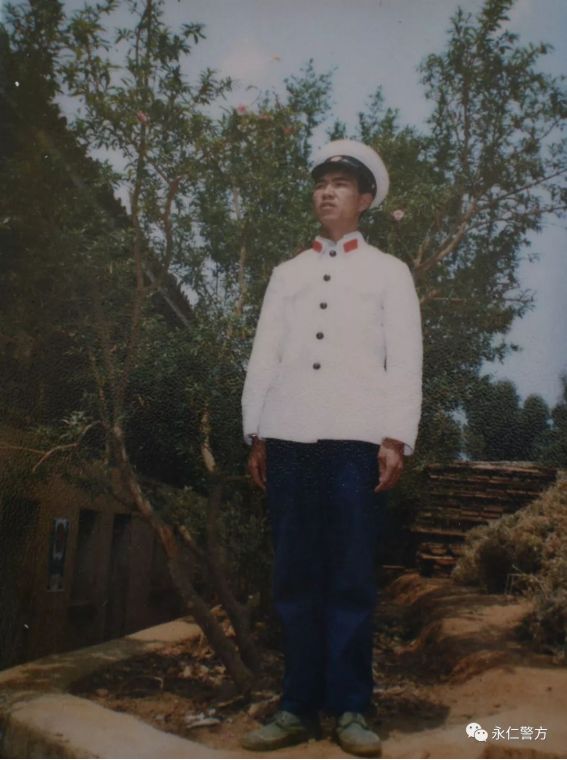 1983年我从部队退伍后到永仁县公安局维的派出所工作,这张照片是1984年在维的派出所门前的石榴树旁拍摄的。改革开放以来,永仁各乡镇设立派出所,永仁县公安局也扩招人员,那时候全局有46人。当时农村派出所的主要工作就是稳定农村包产到户,也就是向农村的老百姓宣传党的政策。那个年代农村派出所一年最多办4至5件小案件,大多时候都在走访入户,而且都是靠双腿走出来的。