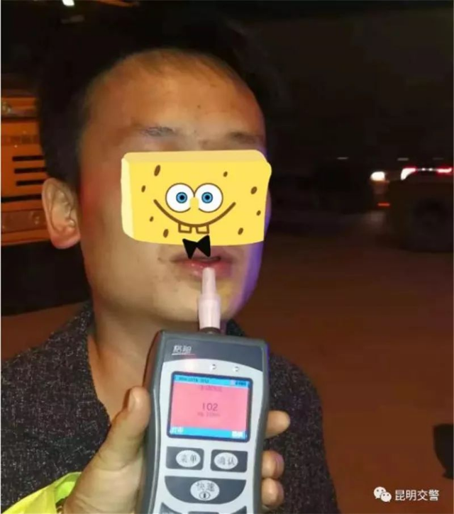 驾驶人体内酒精含量为102mg/100m