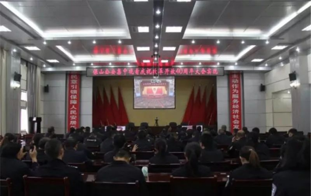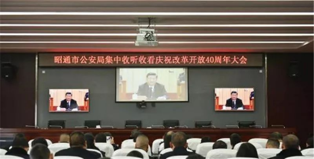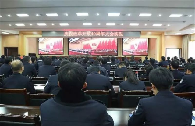 12月18日上午,庆祝改革开放40周年大会在人民大会堂隆重举行。云南省公安厅组织全省公安系统民警集中收听收看。