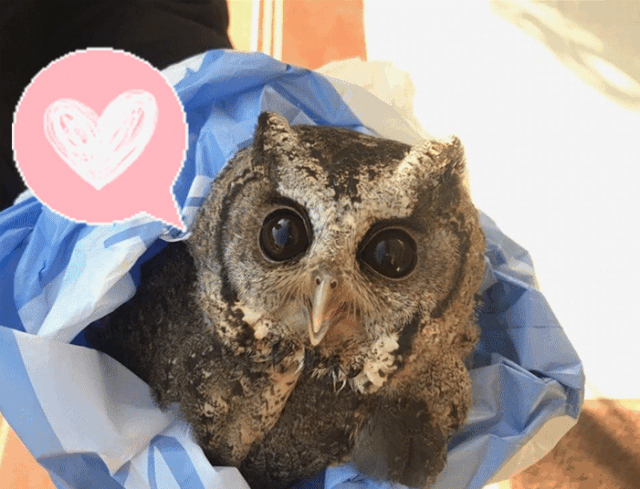 郑先生看着小“猫头鹰”可怜巴巴地在地上扑腾,便赶紧拾起,将它带到了永仁县森林公安局,交由民警照顾。