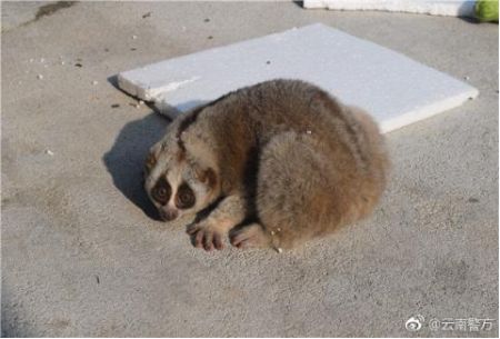 11月19日,德宏州盈江县森林公安局太平派出所接到辖区群众报警称在路边发现了一只蜂猴,民警赶到现场将其救助。