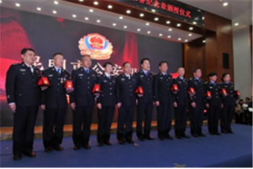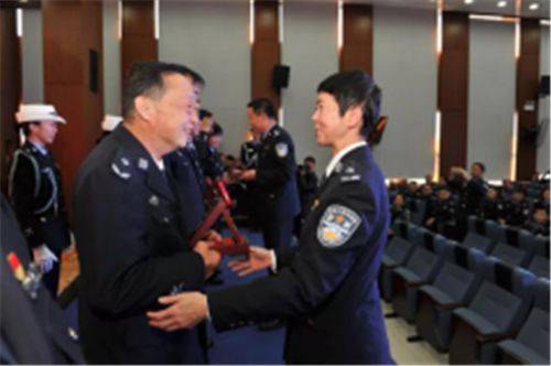 活动现场还为2018年退休的民警代表颁发了退休纪念章,他们一路见证着从绿色制服到国际蓝制服、从110接警记录本到现在的110指挥中心、从巡逻摩托车再到现在的车载智能警务终端信息化巡逻车。