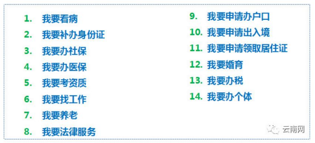 云南“一部手机办事通”从与群众生活紧密相关的主题办事出发,梳理了“我要看病、我要办医保、我要考资质、我要找工作、我要法律服务、我要申请办户口、我要婚育”等12个办事主题,帮助百姓直观知晓并办理该主题下的事项。同时,围绕办理、查询、预约、缴费等4个服务功能,目前共有150个服务事项实现“掌上办、指尖办”。