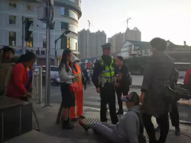 四名路人被突如其来的险情吓了一跳,但她们最终还是选择走到老人身边,将老人扶着坐起来,询问老人的身体情况,用身体支撑着老人的后背。