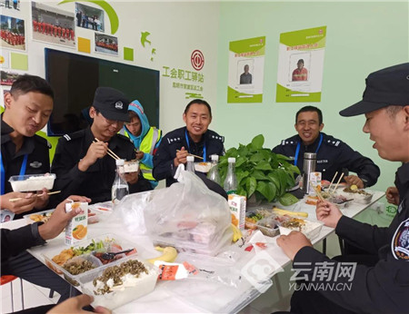 10月11日中午,滇池国际会展中心职工驿站和海东湿地公园职工驿站内人来人往十分热闹,刚结束清扫的环卫工人准备喝杯热水在驿站小憩一会,服务COP15大会一线民警换班后到驿站吃上了一口热饭……一个个温暖的瞬间正在发生。