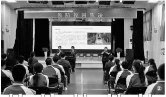 北京市海淀区人民法院少年法庭推动建立“2+3+3”校园暴力预防机制,即与教委、学区、学校联动,针对学生、家长、老师三类群体,分别开展普法教育、亲职教育、依法治校理念教育。