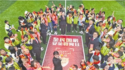 在法庭足球场上,法院干警以“国家安全,共‘童’守护”为主题,开展了一堂生动的法治课。活动中,干警以案例讲述、互动问答等方式,向师生们宣传了国家安全的相关法律知识。