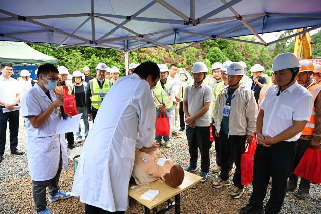 活动现场,西双版纳州水利局相关领导向一线施工作业人员代表发放“送清凉”生活物资及应急药品物质。另外,现场还开展了心肺复苏应急演练、多种安全宣传手册发放,并开展安全趣味活动,内容涵盖安全生产法律法规、应急处置技能、安全生产责任保险、自然灾害防范等多个方面。