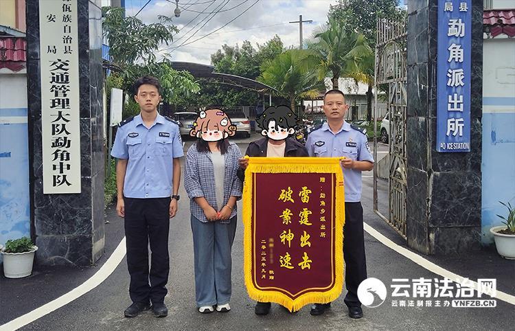 近日,沧源县公安局勐角派出所收到辖区群众肖女士送来的一面写有“雷霆出击 破案神速”的锦旗,以表达对民警迅速破案并为其挽回经济损失的诚挚感谢。