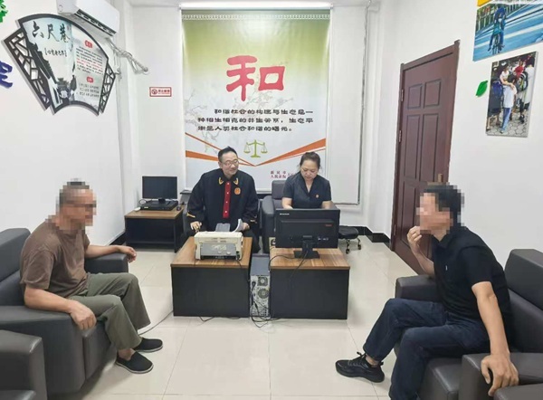 图⑤:塔山法庭调解员成功调解一起合同纠纷。