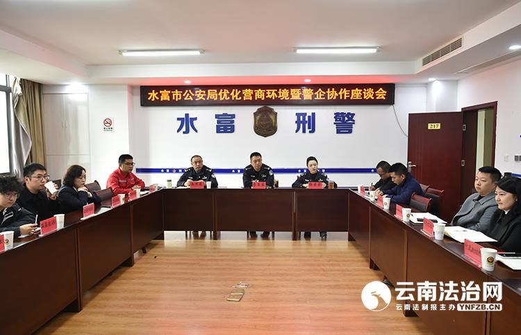 11月13日上午,水富市公安局召开优化营商环境暨警企协作座谈会。会议邀请昭通高速富港贸易有限公司、水富理世食品有限责任公司等12家企业代表参加,水富市公安局主要领导及刑侦、治安、交管、环食药侦和各派出所等部门领导参加会议。