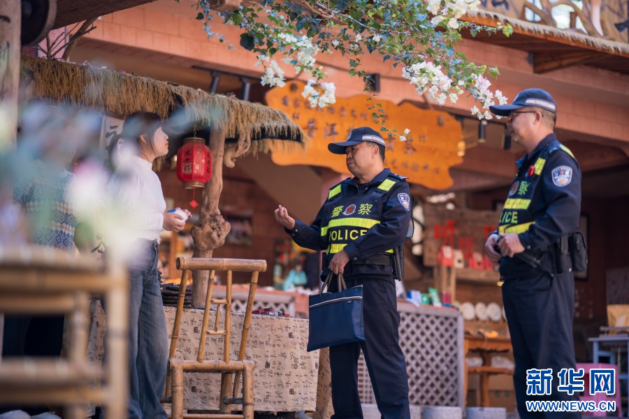 近年来,云南省普洱市宁洱哈尼族彝族自治县同心镇那柯里村旅游业快速发展,今年旅游人数突破90万。当地的同心派出所创新探索“旅游警务”新路径,为村民和游客筑牢平安防线。(赵旭东)