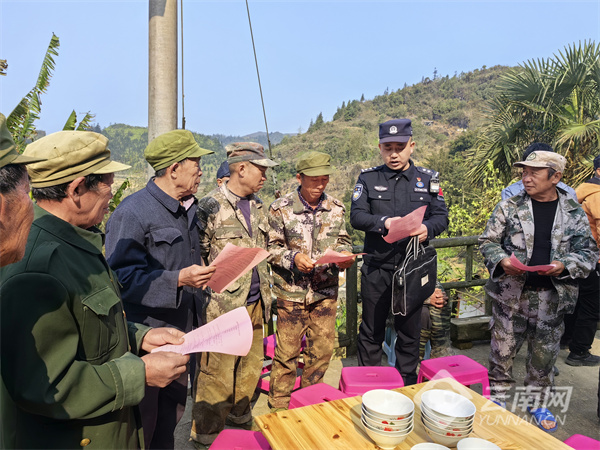 云南网讯(记者 赵岗 通讯员 杨静)“老乡们,杀猪饭吃得开心,安全可不能‘缺位’!喝酒不开车、开车不喝酒,邻里相聚别逞强,文明聚餐才热闹!”云南文山边境管理支队小坝子边境派出所民警说。近日,该所精准把握辖区治安实际特点,主动延伸服务触角,深入村寨院落、聚餐现场开展“文明聚餐 安全团聚”主题社会治安宣传活动,用接地气的方式筑牢年终安全防线。