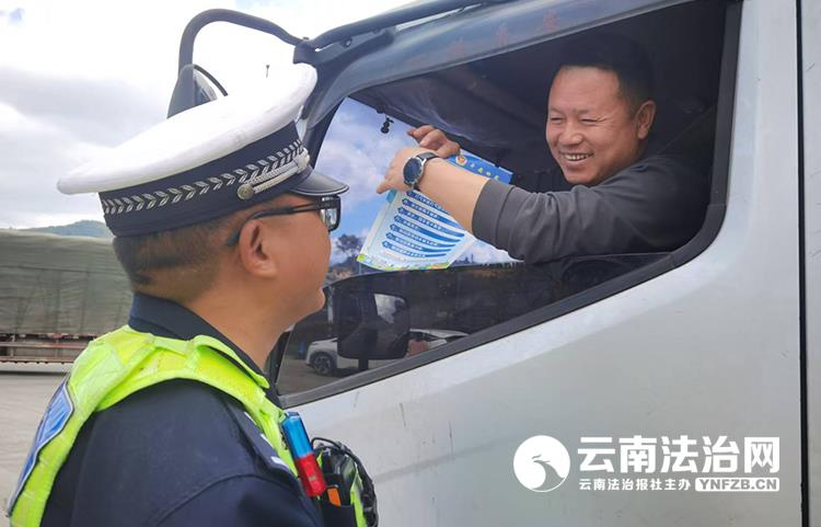 “高速上车辆发生故障怎么办?”“车辆在高速上行驶,最高限速是多少?”随着提问声响起,趣味有奖问答环节将现场氛围推向高潮。现场群众踊跃抢答,答对问题的群众还能获得大理交警送出的反光车贴、交警小熊等“平安小礼品”,在轻松愉快的氛围中深化了对安全知识的记忆。随后,宣传民警拿着宣传资料和礼品登上旅游大巴为全车司乘人员送上专属“安全叮嘱”。宣传民警在向驾乘人员发放宣传资料的同时,不忘结合大理境内高速弯多坡陡的特点,重点提醒司机杜绝疲劳驾驶、超速行驶等违法行为;叮嘱乘客全程规范使用安全带,切实提升司乘人员的交通安全意识。