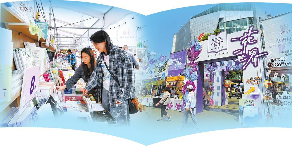 市民和游客在春城书市上选购图书。 本报记者 陈飞 摄 春城书市在昆明市南屏街中心广场开幕。 记者 刘薇薇 摄