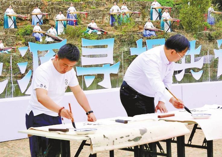 曲靖市民现场挥毫泼墨。 记者 隋鑫 摄