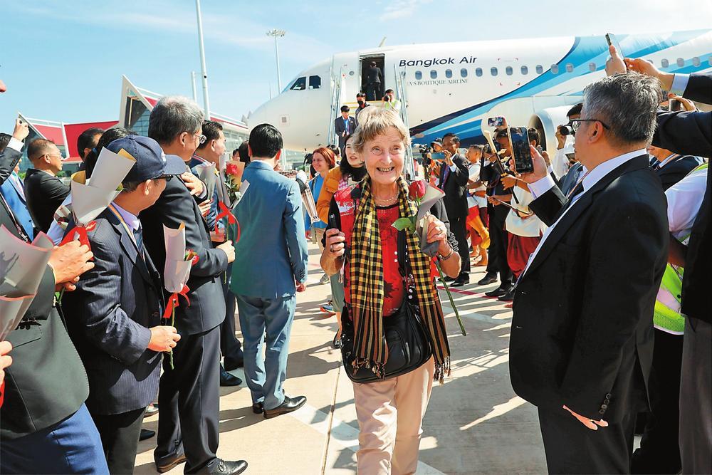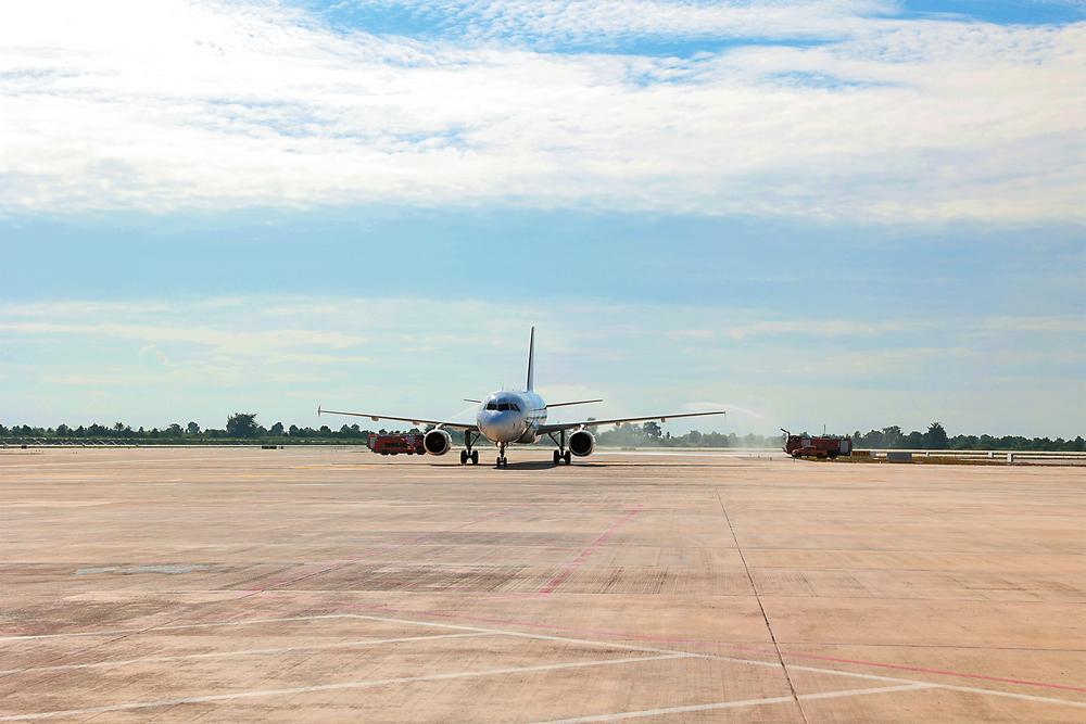 通航当天,首个进港航班由曼谷航空执飞,从泰国素万那普国际机场飞往暹粒吴哥国际机场。吴哥国际机场为首架进港客机举行“过水门”仪式。旅客们走下舷梯,争相在吴哥国际机场打卡留念。