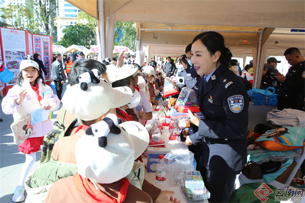 活动中,“野生菌反诈”特色宣传格外吸睛。工作人员以剧毒野生菌的“伪装逻辑”类比电信诈骗的迷惑性,用地域化案例和通俗语言提醒群众“擦亮双眼防骗局”,让反诈宣传更具云南特色、更接地气。从11月1日起持续上演的灯光秀,到活动当天全省129个县(市、区)移动屏同步播放的普法视频,再到云南网、云南法制报、云南普法新媒体矩阵的全媒体直播,构建起“线上+线下”“云端+现场”的全域传播体系,让未能到场的市民也能同步参与普法互动,实现宣传全覆盖。