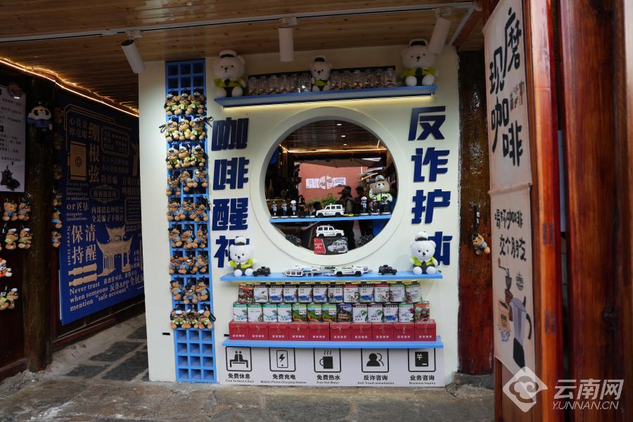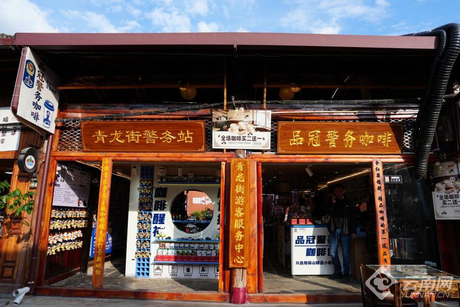 错落有致的街景中,一处店面格外引人注目。同一个门面,挂着两块牌子——“品冠警务咖啡”和“青龙街警务站”。走进去,警察小熊玩偶随处可见,墙上贴着反诈海报,柜台上放着警车模型。20平方米的空间,既是飘香的咖啡馆,更是守护平安的警务前哨。